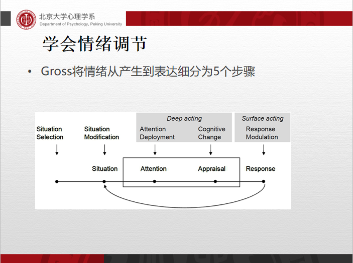 Gross将情绪从产生到表达细分为5个步骤(图源:张昕教授ppt)