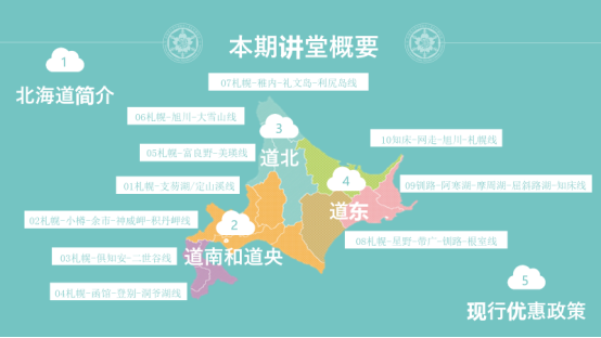 本期讲堂先是对北海道的整体情况作了简单介绍,又根据道南&道央,道北,道东这四大区域精心规划了10条旅游线路。同时,对一些国、道、市出台的各类现行旅行优惠政策进行了搜集和整理,为大家的出游提供了可靠的经验及建议。下面让我们一起来回顾一下本期讲堂的精彩内容吧。