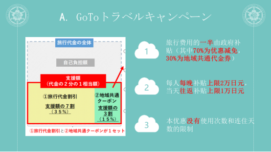 受疫情的影响,为促进日本国内的旅行需求,日本政府推出了“Go Toトラベルキャンペーン”的补助政策。希望以旅行补助金的形式,促进消费。具体政策内容如下图所示。