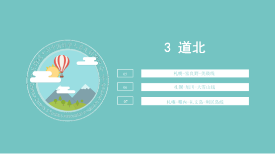 我们将道北地区主要分成了三条线路,即⑤札幌-富良野-美瑛线;⑥札幌-旭川-大雪山线;⑦札幌-稚内-礼文岛-利尻岛线。