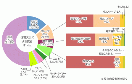 根据日本总务省消防厅历年发布的消防白皮书的数据显示,相比于气候温暖的季节,寒冷季节发生的火灾,无论是在次数上还是在经济损失方面均占比较高。而其中,住宅内为火灾高发区域。