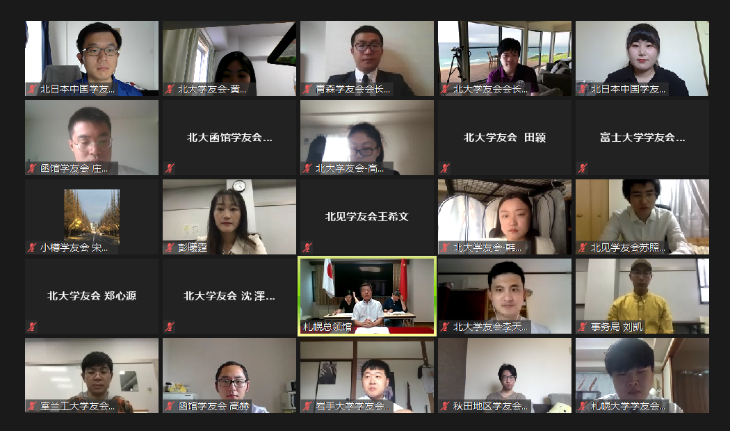 8月7日,2020年北日本中国学友会换届仪式曁防疫工作推进会成功举行。受疫情影响,考虑到为严防“三密”,本次大会采用了线上方式举行。中国驻札幌总领馆孙振勇总领事,孔多孜·玉素甫副总领事,教育领事王珏老师,北日本中国学友会及下辖12个分会学友会长与理事,共计61人出席了本次大会。