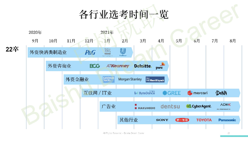 在这样复杂多变的情况下,根据在日就职的时间线,经历过紧张的夏季实习,面向22卒的正选考已经开始了!想要收获心仪的offer,请务必从现在开始准备!
