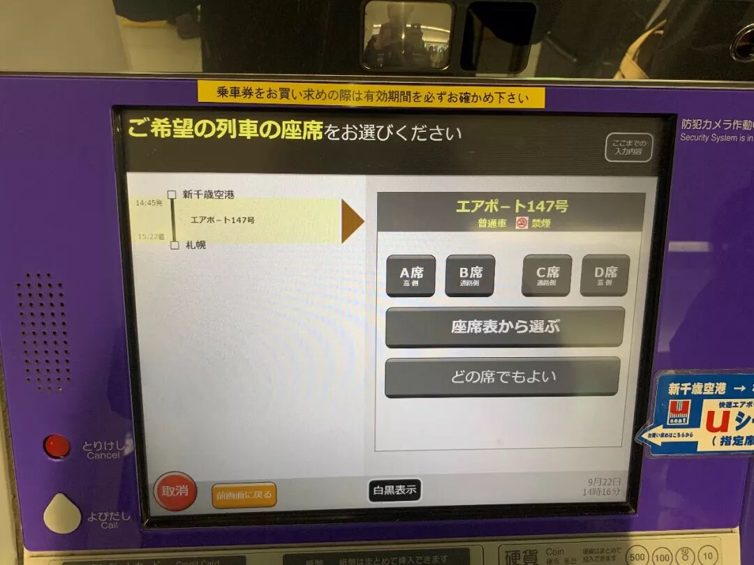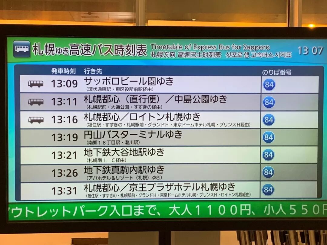 从新千岁机场到札幌站的巴士需要提前进行购票。票价1100日元。