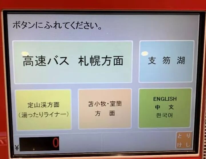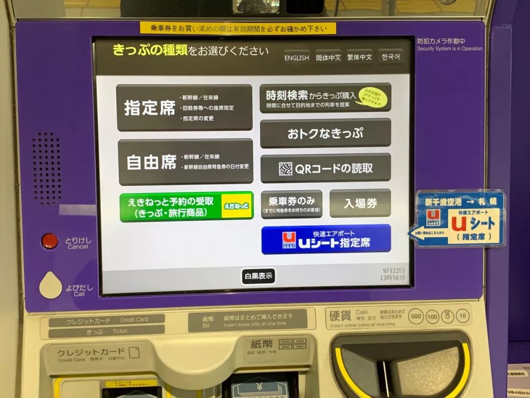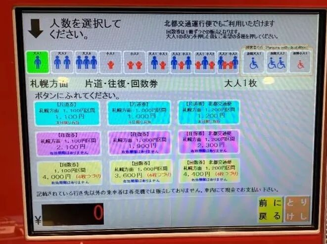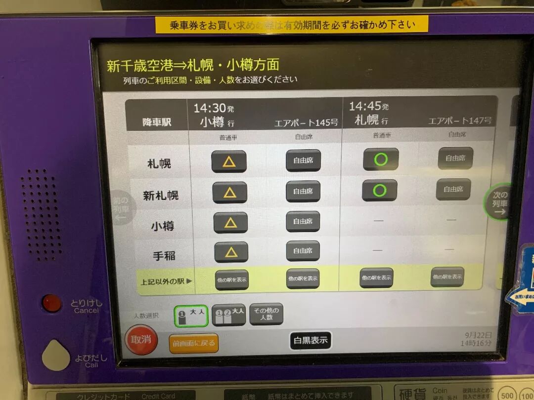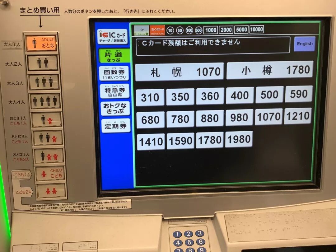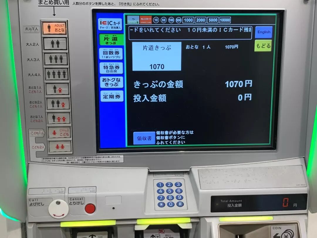 自由席车票购买流程非常简单:点击札幌1070按钮,投入现金,等待出票即可。