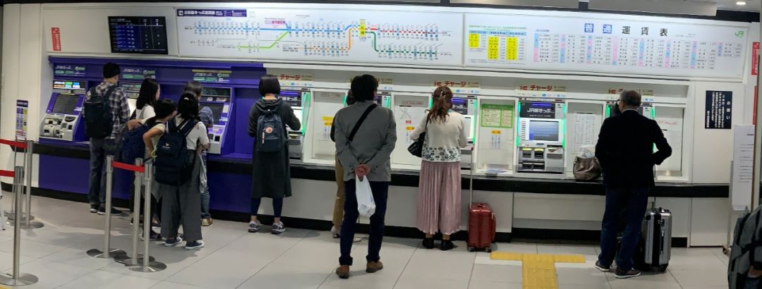 白色售票机为自由席售票机,指定席在蓝色售票机处购买