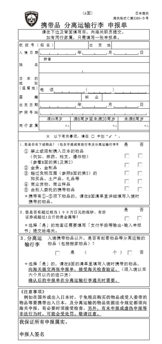 入境卡与海关申报单需按照护照与住宿信息严格填写,涉及到入境时的审查。入境卡中渡航目的处可以写留学,停留时间按照预定的留学期间书写。