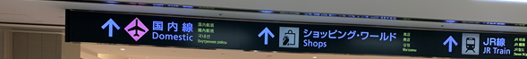 走到步道尽头后就是机场的商业区,在此处会看到路线指引标志。