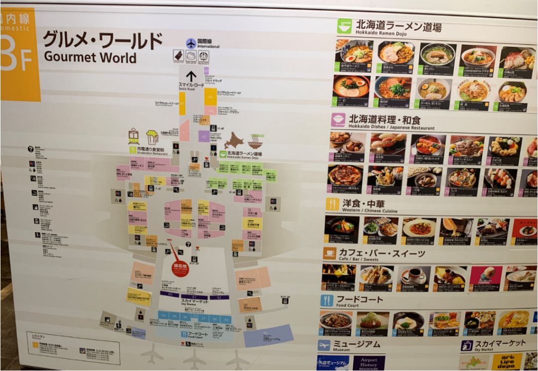 如果在机场有就餐需求,到达出口右手边有LAWSON便利店,可以购买一些简单的食品(三明治,炸鸡,饭团,便当等)。或经由机场内商业区上至3楼就餐。
