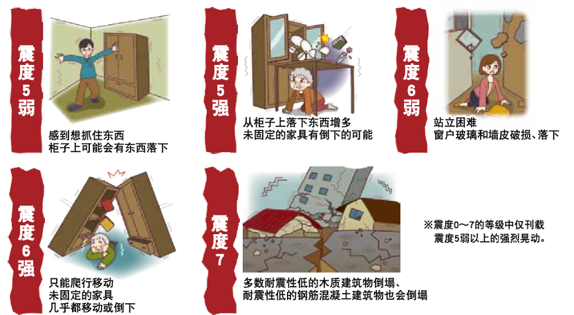 首先我们需要对地震的强度有一个概念上的认知。地震按照发生地震时某地感到的摇晃强度的数值被分为10级。每个振度人体感受到的摇晃、屋内的状况根据气象厅震度级别关联解说表分析如下: