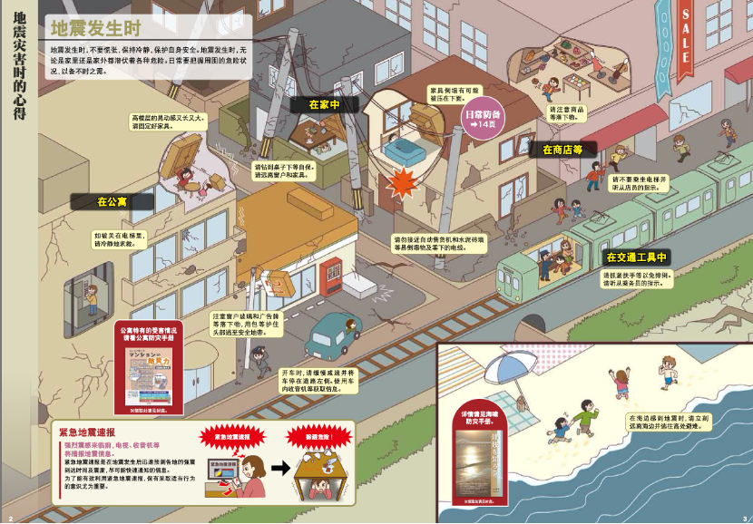 - 强烈震感来临前,电视、收音机等将播报地震信息。在不同的环境下需要采取的适当行为也有不同,详细请参考札幌市防灾手册。