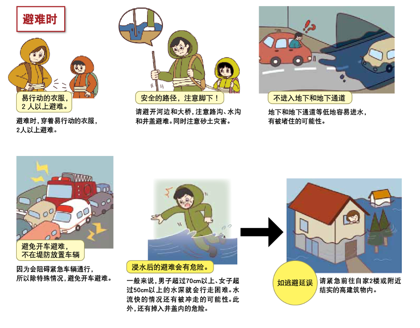 - 提早行动很重要。风灾和水灾的灾情会随时间延长而加剧,因此提早避难极为重要。