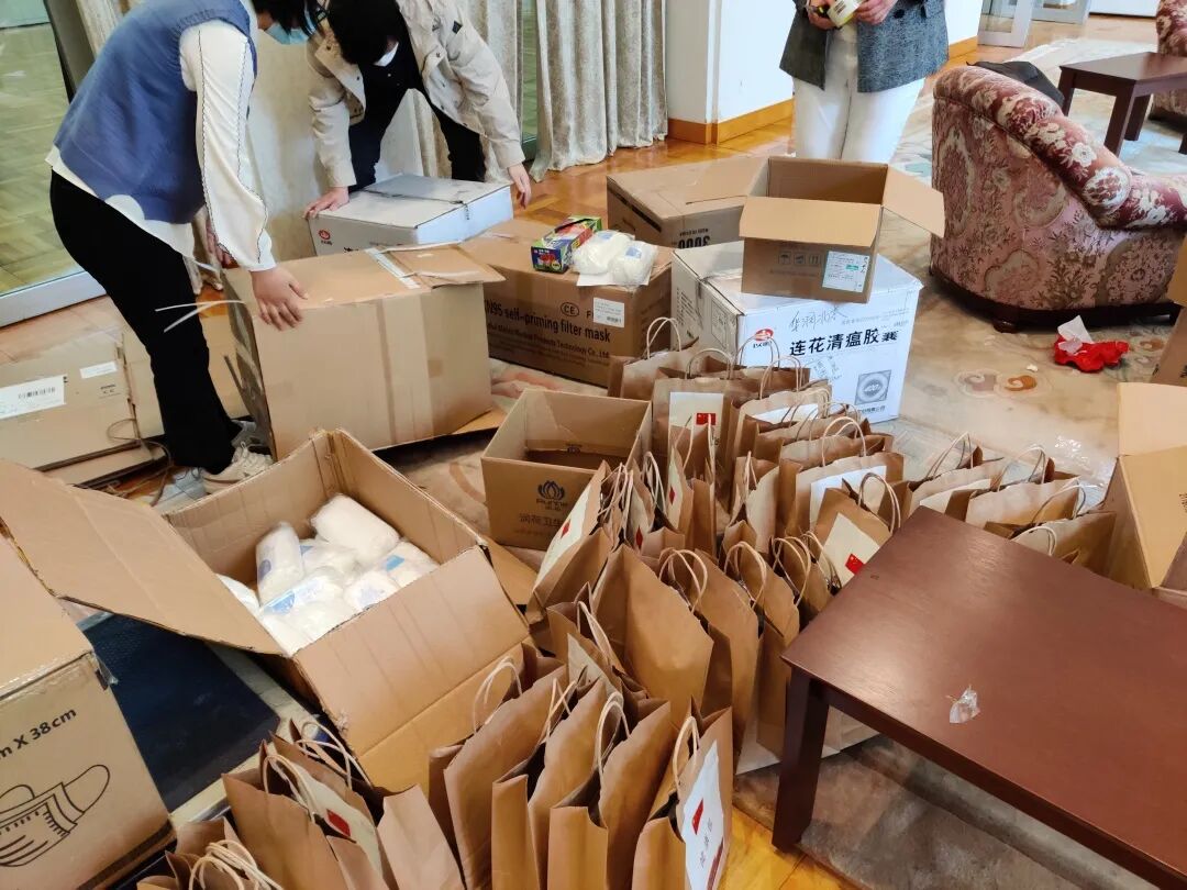 共计发放一次性口罩56725枚,连花清瘟胶囊3283盒,N95口罩2650枚,酒精消毒湿巾1984包,一次性酒精消毒片1600片,消毒喷雾737瓶,酒精除菌啫喱429瓶,DHC维生素C片429袋,酒精免洗消毒液275瓶,可重复利用口罩200枚,各类食品178份。