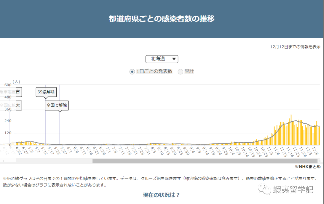 北海道新冠疫情感染者数情况图片来源:HNK新冠疫情特设网站https://www3.nhk.or.jp/news/special/coronavirus/data-widget/#mokuji1