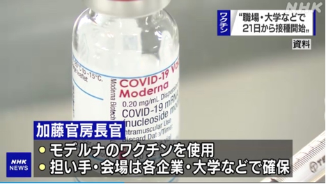 关于疫苗接种的药剂,日本政府表示,面向部门大学的接种药剂将使用美国莫德纳公司生产的疫苗,接种对象为该校以及周边学校的学生和教职员工。