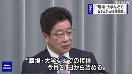 据NHK电视台报道,官房长官加藤胜信在记者会上表示,为了加速新冠疫苗的接种进程,提高疫苗接种工作的效率,日本政府决定将于6月21日启动面向部分大学的疫苗接种工作。